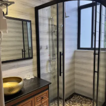 The location is good. Just 300 metres to the official Mingshi scenic area and the Tourist Centre. There are shuttle buses at the Tourist Centre to Detian Waterfall every day at 8.30 am, 12 pm, and 4 pm at 15 Yuan per person. There are also return shuttle buses from Detian Waterfall to Mingshi.