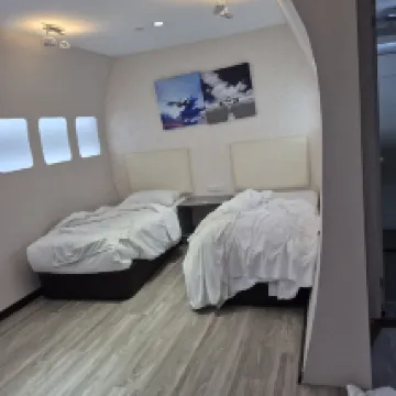 Es un lindo hotel con temática de avión se los recomiendo su ubicación no tan buena