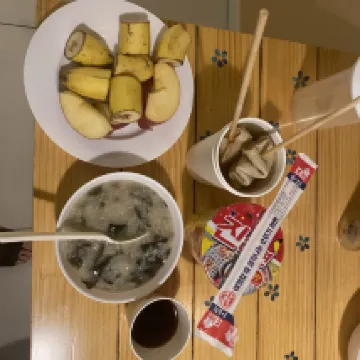 죽, 어묵탕.직접만드신 음식들 간식거리,과일 계란 빵 등 요기거리를 로비에 24시간 언제든 편하게 먹을수 있게 준비해주십니다 덕분에 감사히 잘 쉬었다 갑니다 동해에 가게되면 다시 가고싶은 곳이에요