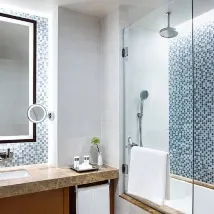 Es un hotel bastante antiguo, así que el mobiliario no es nuevo. Nos dieron la habitación king. Me pareció un poco molesto que la ducha esté dentro de la bañera; definitivamente no es para quienes no pueden subirse a ella. El calentador de agua no funcionaba bien para la ducha fija. Nos quedamos solo una noche.