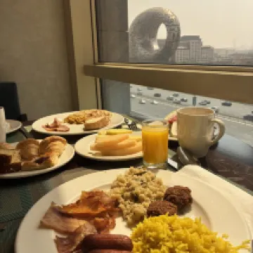 El hotel, la ubicación y el personal son estupendos! Pero la única pega es el ascensor, que hay que esperar unos 15-20 minutos, sobre todo para desayunar. Y, el desayuno en sí es en el quinto piso y solo hay un restaurante en todo el edificio, es una especie de horror, nunca había visto tanta gente desayunando. Hay colas por todos lados, las mesas están ocupadas. Un hotel de gran altura como éste debería tener al menos dos restaurantes.