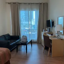 Llegué en medio de la noche y pedí un check-in temprano, como todas las habitaciones individuales estaban llenas, me pasaron a un apartamento espectacular. El desayuno es excelente y la ubicación es muy conveniente, a 10 minutos a pie del puerto deportivo de Dubai o solo a 2 paradas de tranvía justo en la esquina del hotel.