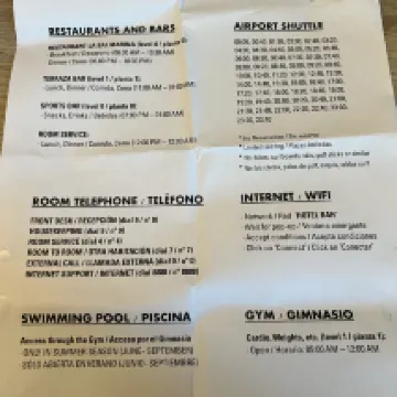 Esta vez eran las 10 de la noche en Barcelona, ya que había un vuelo mañana por la mañana, consideré cuidadosamente varios hoteles antes de elegir este hotel. Este hotel tiene un servicio de transporte en autobús, pero era mi primera vez, así que todavía estaba un poco nervioso. Mi equipaje de la T1 y salí. Vi un hotel debajo del icono del autobús que apuntaba a la derecha. Siga recto unos 200 metros y verá el autobús del hotel (hay un icono en el lateral del autobús). 15 minutos para subir al autobús, recogí a la gente de la T2 en el medio y luego llegué al hotel, y luego a las instalaciones. Como se muestra en la imagen, en general es conveniente para quienes toman un vuelo nocturno. para pedir comida para llevar cerca Ni se te ocurra ir al supermercado por la noche. Hay un pequeño bar abajo que puedes probar.