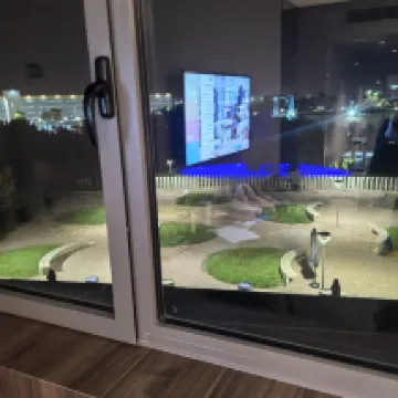 La piscina no es la misma que en la foto principal. En realidad es muy pequeño. La piscina sólo está abierta en verano, ¡no se escribe ni una palabra sobre esto en ninguna parte! Estuvimos allí en noviembre. Elegí este hotel por la piscina, pero es una lástima. Tuvimos 1 día y 2 noches. Hubiera sido mejor coger un hotel junto al mar, está muy cerca, está a unos 20 minutos en coche hasta el mar. No está cerca del aeropuerto BAH, ni a pie. Llegamos a las 20 hs. El transporte al hotel nunca llegó. Pidieron durante mucho tiempo encontrarlo, nadie lo sabe. Nos enviaron en un autobús urbano. Al final cogimos un taxi. Según el taxímetro, 21 euros, 2100 rublos por un viaje de 7 minutos. De antemano, si descargas Uber (solo Uber, no Rusia), te saldrá 2 veces más barato. Descubrimos que el lugar donde debería esperarnos el transbordador es avanzar hacia la derecha desde la salida de la terminal 2, donde llegan los vuelos internacionales, hasta el comienzo del edificio del aeropuerto y más adelante. Todos los transbordadores paran allí. Pero no esperamos. Salimos del hotel en autobús. Sale cada 20 minutos.