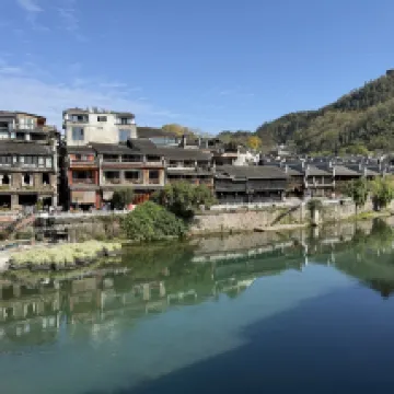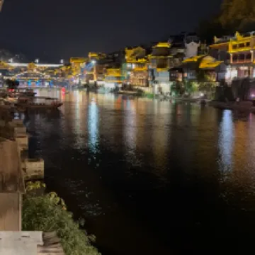 Excelente experiencia en fenghuang. Nos recogieron en el puente donde nos dejaba el taxi y nos acompañaron llevándonos las maletas. Nos ofrecieron café en múltiples ocasiones sin cargo. Siempre atentos. La zona excelente (a pesar del ruido, pero termina relativamente pronto para poder descansar). La zona impresionante, muy recomendable el hotel, sin duda si vuelvo repetiría.