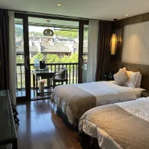 La habitación es bonita. 👍 La vista del río Tuojiang es desde afuera. 😌 Puedes cenar en el balcón. 🍴 También es muy conveniente para visitar la zona pintoresca. Vale la pena recomendarlo. El jefe también es muy entusiasta. ❤️ También nos ayudó con el equipaje. 🧳