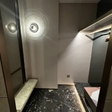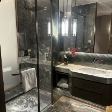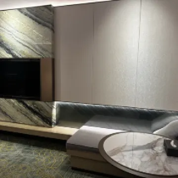The hotel offers spacious rooms equipped with smart voice functions, allowing guests to control room features effortlessly. The design is both luxurious and elegant, featuring a holographic projection light show that adds a unique touch to the ambiance.
