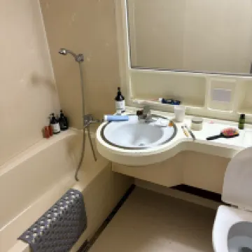 화장실과 샤워실 또한 노후되었으나, 수압과 온수상태는 매우 좋았습니다. 비치된 샴푸, 린스, 바디샴푸 등의 상태는 양호했으며, 드라이기도 준비되어 있었습니다.
