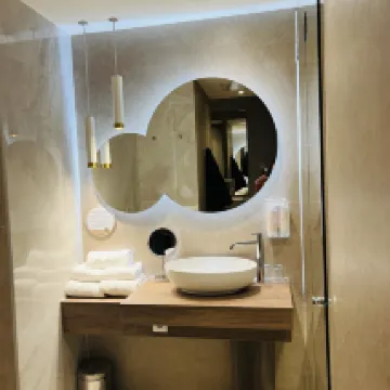 De laatste 6 maanden heb ik wekelijks gelogeerd in het hotel. Omdat het een nieuw hotel is, zijn er (veel) kinderziektes die optreden. Loos alarm 's nachts, fouten bij reserveringen, fouten in bediening in het restaurant, slechte kwaliteit eten, geen krant, starre medewerkers.....maar gaandeweg verbeterde dit aanzienlijk. De laatste paar weken was alles top geregeld! Petje af!