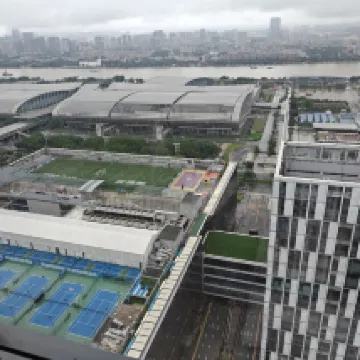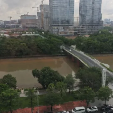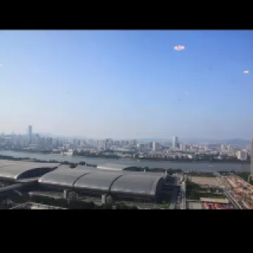 Excelente ubicación, a pocos pasos de la estación de metro. Sus ventanales permiten disfrutar de una hermosa vista nocturna del río Perla. Muy bueno.