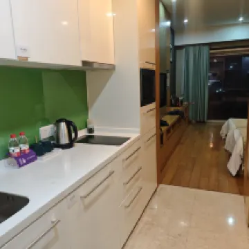 ¡La habitación es grande y limpia! Yo me alojé en un apartamento de un dormitorio y sala de estar, ¡y hay espacio de sobra para abrir la maleta sin problemas! La cama es comodísima, con la firmeza justa. ¡Advertencia: te costará levantarte de la cama! ⚠️ En el baño, el agua caliente sale con mucha fuerza. Está completamente equipado con lavadora, nevera y microondas. ¡Puedes cocinar algo o lavar la ropa con total comodidad, como si estuvieras en casa! ~