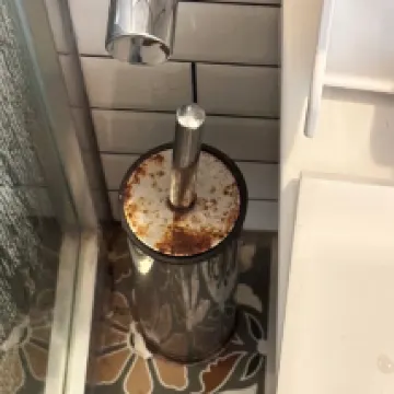 В ванной ершик для унитаза проржавел и разваливается в руках, нет косяка двери, он исцарапан и ручка двери проржавела