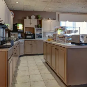 We arrived around 10pm for one night. Immediately, the room was ice cold. the thermostat on the wall was set at 68. It was mid 50’s outside. we could only get cold air even after setting it to HEAT 78 degrees. We waited a few minutes for it to change over, still cold air. We shut it down which was not easy. Called front desk. Explained. She was very polite. Told her we’d wait a few minutes then try for heat again. She offered a new room if it was still too Cold. We were in our pjs already. Tried again, no heat. We decided to huddle undercover and looked forward to “breakfast included”. When I pulled down the bedspread, it saw a big stain or oil spot or wet spot. Couldn’t figure out what it was but it wasn’t actively moist…but a died stain. Had to question why anyone would put that sheet on a guest bed, how could you miss it? We were so exhausted after a 3.5hr drive, I put a towel over it and got in bed feeling uneasy. Nice hot shower in a tub that desperately needs new hardware if not replacement. Rust3d, chipping pitted chrome. Breakfast..a big disappointment. Bagel, toast, English, some cereal, Juice, yogurt, milk, and an automatic pancake making machine. You get four of them…rubber comes to mind. Plus all the condiments…, butter, cream cheese, syrup,jelly’s, as well as oranges, apples and a bowl of hard boiled eggs. No scrambled, no bacon, no omelette, no links, no waffle machine…just cold hard-boiled eggs in water. Not what we’d call “breakfast”. More continental… We’ve travel a lot and stayed at many Wyndham’s around the country, but this one damages their hotel brand. We will not be back and suggest you don’t even bother.