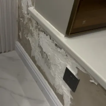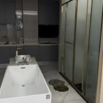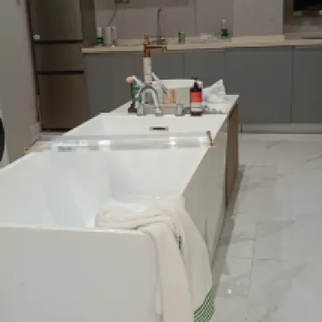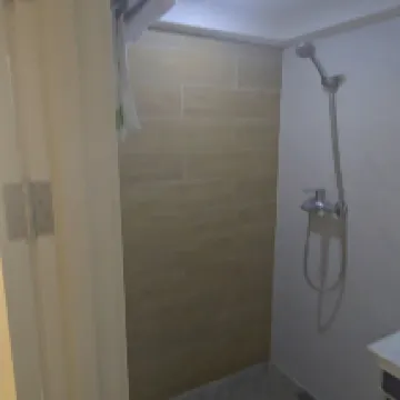 - В душевой нет шторки и вода брызгает на умывальник и пол в ванной.