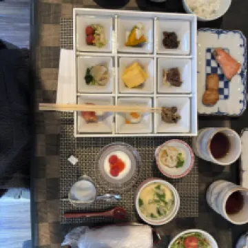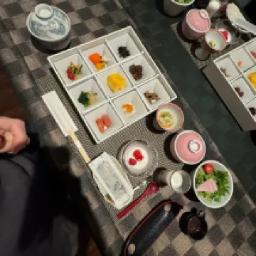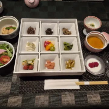 Отличный и разнообразный кайсеки ужин и завтрак, на уровне хороших ресторанов. Вкусно красиво. Подают не в комннте, а в общем ресторане, но там все огорожено для приватности.