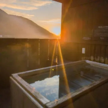 Онсен. С водой из источника только публичный онсен на открытом воздухе. Очень хорош! В красивом месте, вода приятная, есть навес и можно отогреваться в плохую погоду и дождь.