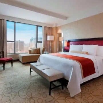 Came with family of 8. Rooms and toilets are sufficiently big. Breakfast spread at JW Marriott was much better especially the gyoza. Courtyard Momo cafe so so though the fried rice was good. Wifi in the hotel is so poor though. Can download or watch anything except chat on WeChat. Location is not the best though. Have to Didi everywhere.