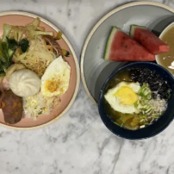 También hay desayuno, que se puede tomar de 7:00 a 10:00, ¡es muy rico e incluye frutas! ¡yogur! ¡Pide bolas de masa wonton como quieras! ¡Todo lo demás que debería estar allí básicamente también está allí! Está perfectamente bien comer cuando estás lleno. ¡Dame muchas ideas! ¡El servicio es tan bueno que el personal del restaurante es muy amable! ! !