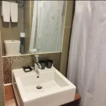 El personal tuvo una actitud de servicio deficiente. El baño solo tenía una cortina de ducha sencilla. El cabezal de la ducha salía con fuerza. Cuando me duché, el agua se salió a borbotones y el inodoro quedó empapado.