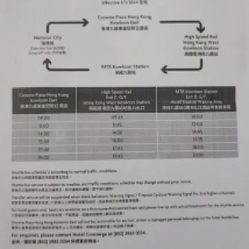 Respuesta del alojamiento: Dear Guest,Thank you for your feedback! We're glad to hear that you had a good stay and enjoyed the shuttle bus service to the high-speed rail station. We appreciate your comments and look forward to welcoming you back soon!Best regards,Crowne Plaza Hong Kong Kowloon East