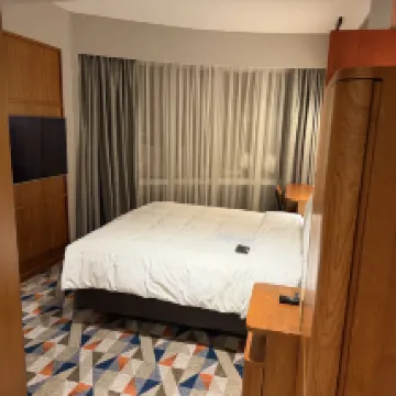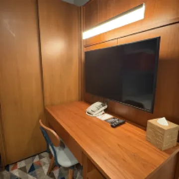 La habitación es relativamente pequeña y el aislamiento acústico es regular. Se oye la televisión de al lado. Si te sientas solo en el borde de la cama, no hay soporte alrededor. Da la sensación de que solo hay colchón y es fácil caerse. Las cortinas de la habitación bloquean muy bien la luz.