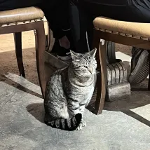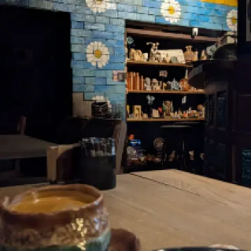 El personal fue súper amable y me brindó toda la ayuda y el servicio que necesitaba. Los dos gatos eran súper lindos. Matina era un pequeño té verde pegajoso. Había obras de arte y presentaciones en las paredes del piso superior y en las pequeñas mesas altas del pasillo. El ambiente era genial~