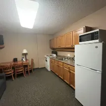 Las instalaciones son relativamente antiguas, hay una cocina para cocinar y el menaje de cocina está completo. Cómodo estacionamiento, cerca del supermercado, compras convenientes. Oscurece más tarde en verano. En el centro de la ciudad podrás encontrar osos, ciervos y otros animales en cualquier momento. El paisaje a lo largo del camino es hermoso.