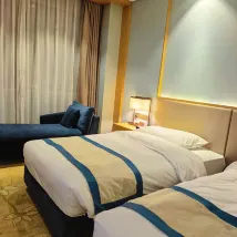The best bed we had in our china trip, we chose the memory foam mattress, pillow and even a bolster. Our best ever sleep in our trip in China Once we enter the hotel a pleasant smell grwet us with tradional design lobby. Late supper were offered to be sent to our room upon our arrival. A welcome fruit plate also sent to our room. The room is spacious with 4 bottles of waters. The service is so well we were feeling cold and they sent heater to our room. We order chicken soup and a big plate of silky egg,eventhough it took awhile, the taste and quality is worth the wait. Defintly come back again. I hope they open more branches in other cities too. It is rare to get this quality memory foam,mattress pillow and bolster.