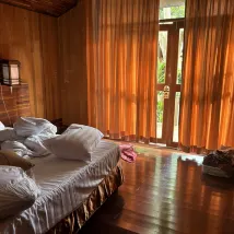 Cabaña súper linda! En primer lugar, la ubicación del hotel es muy buena, ¡a solo 20 metros del muelle! La relación precio-rendimiento es muy alta. La cabina de lujo cuesta poco más de 400 por noche. El aire acondicionado está encendido todo el día, ¡lo cual es muy fácil de usar!