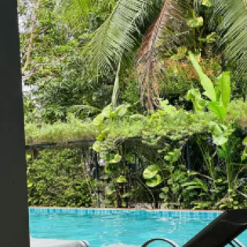 Desventajas: Las comodidades de la habitación son anticuadas, la iluminación es tenue y no hay peines, secadores de pelo, zapatillas ni espirales antimosquitos. La cerradura de la puerta es un poco problemática; hay que cerrarla y volverla a cerrar varias veces al día. Para limpiarla, hay que retirar la tarjeta eléctrica, lo que obliga a volver a encender el aire acondicionado al volver. El desagüe del fregadero está roto y no retiene el agua, lo que dificulta el lavado de la ropa. La ducha está atascada y tiene muy poca presión de agua, así que lavarme el pelo no me lo limpia y me lo deja pegajoso. Hay piscina, pero no tiene sistema de circulación; solo la rocian con pesticidas. El agua está amarilla y agria, lo que me quita el apetito. Lo más insoportable fue que, aunque la temperatura de la habitación era baja, las picaduras de mosquitos seguían siendo intensas, despertándome constantemente en mitad de la noche. Los gallos empezaron a cantar a las 4 de la mañana y continuaron hasta las 7 de la mañana, así que no pude dormir bien en las tres noches que estuve allí. La insonorización era deficiente, pero por suerte no había otros huéspedes durante mi estancia.