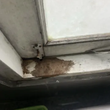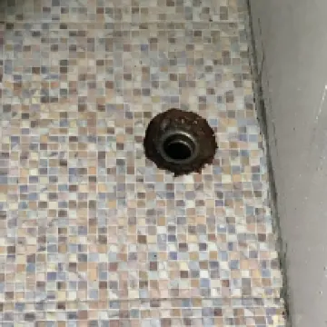 El baño... ¿por dónde empezar? Al menos la ducha estaba caliente, PERO el desagüe de la ducha se agotaba en un agujero en el suelo, y todos los accesorios de la ducha estaban incrustados con cal y suciedad. La ventana estaba podrida, no encajaba bien y tenía moho. Parecía que estuviéramos en una choza, no en el baño de un hotel.