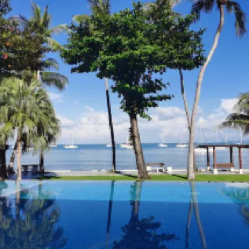 Alojarse en una habitación con ventilador durante 2 noches tiene ventajas y desventajas: se puede utilizar Wi-Fi sin interrupciones durante las reuniones. La habitación no es muy amplia, la cama se derrumba, el agua corre fuerte, el agua potable solo se proporciona por primera vez el día de la estancia. Hay 3 piscinas en las que es agradable jugar. La que está al lado del mar es la que está al otro lado. El lado opuesto del alojamiento es frío y no parece seguro. La puerta de la habitación es muy difícil de abrir. Enchufe de alimentación: si lleva su Notebook al trabajo, prepárese para enchufarlo también. No hay perchas en la habitación. Hay un depósito de 500.- El precio se considera caro en comparación con el alojamiento y los servicios.