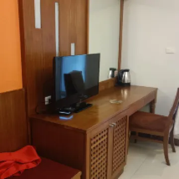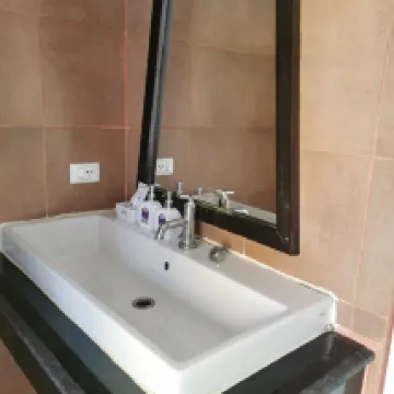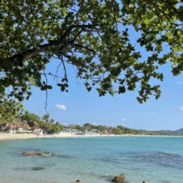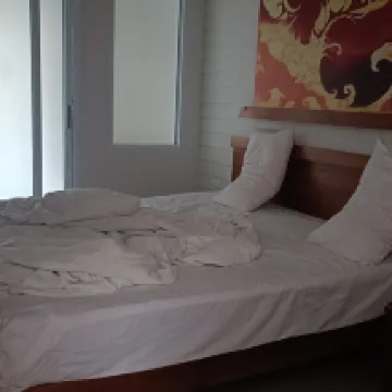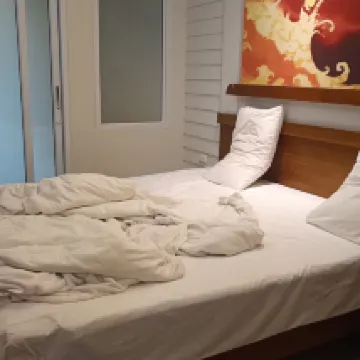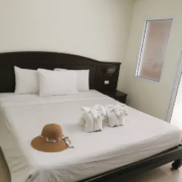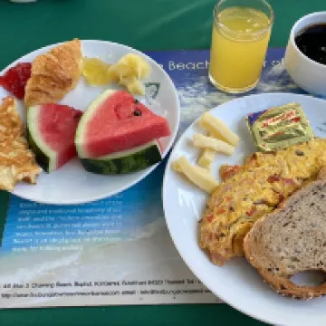 Un buen hotel con una ubicación excelente para quienes desean desconectar de las multitudes y disfrutar del mar y el sol. El personal es excepcional; nos ayudó y resolvió todas nuestras dificultades. El check-in fue a las 12:30, a pesar de las 14:00 obligatorias. Teníamos dos habitaciones de lujo contiguas (para mi esposo, yo y dos hijos adolescentes), muy convenientes. Los desayunos son normales en cuanto a la variedad de platos, pero definitivamente no pasarás hambre, ya que siempre hay una estación de huevos, tostadas con diferentes tipos de mermelada, algunos pasteles o bollería, frutas (sandía, piña, mandarina), así como verduras y hortalizas con salsas para preparar tu propia ensalada. También hay platos tailandeses calientes, pero es un gusto adquirido. La playa es preciosa, hay una tienda cerca y varias cafeterías muy buenas con deliciosa comida tailandesa. Caminamos hasta el centro de Chaweng sin problemas varias veces, pero en nuestra opinión, es bastante ruidoso y está abarrotado. Aunque hay buenos sitios para comer, un mercado y helado frito, si no te apetece caminar, hay songthaews cada minuto y te llevan por 50 baths por persona. El hotel solo tiene dos inconvenientes que me harán compararlo con otros la próxima vez: hay un río cerca (un canal), que a veces huele mal después de la lluvia, y, en segundo lugar, hay una vibración bastante fuerte y un ruido de baja frecuencia proveniente de los aires acondicionados externos (vivíamos en el segundo edificio). Por lo demás, la relación calidad-precio es ideal.
