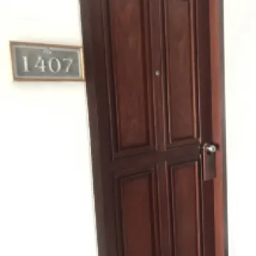 Una habitación está tan insonorizada que se oye hablar a los vecinos y por la mañana sus puertas se cierran de golpe... (admire la foto del rellano)
