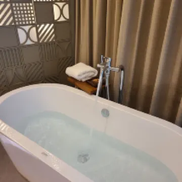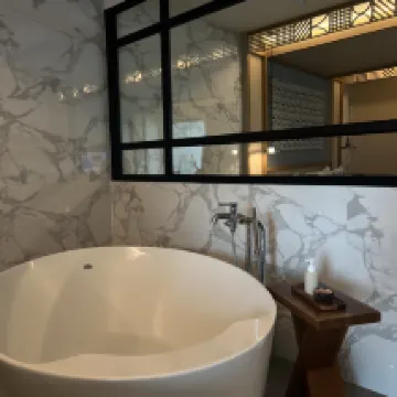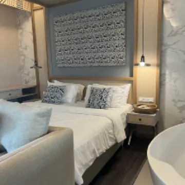 La suite era muy cómoda. Podía oír el ruido de los vecinos (sonido de la televisión, gente hablando) y tenía dudas sobre la insonorización. El drenaje es un poco débil por lo que me gustaría que lo mejoraran. Las botellas de cerámica recargables son elegantes, pero pueden ser peligrosas en áreas acuáticas, por lo que me gustaría que consideraras usar otra cosa.