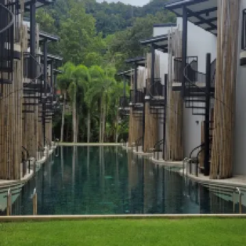 Aunque la ubicación está lejos de la playa de Ao Nang, el hotel cuenta con un servicio de transporte que va y viene a la playa de Ao Nang en 10 minutos cada hora, por lo que tuve una estancia estupenda sin mayores problemas. La ubicación remota tiene ventajas y desventajas, ya que es tranquila y permite ver un bonito bosque. El personal de recepción fue amable y el desayuno fue especialmente bueno. Cuando no quería esperar el transporte o quería quedarme más tarde, tomaba un tuk-tuk de regreso al alojamiento y pagaba unos 150 baht.
