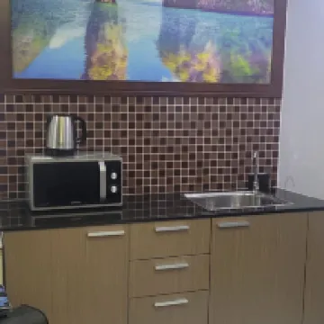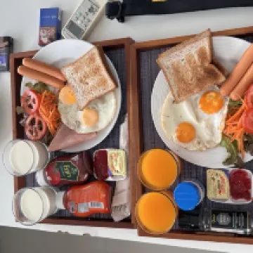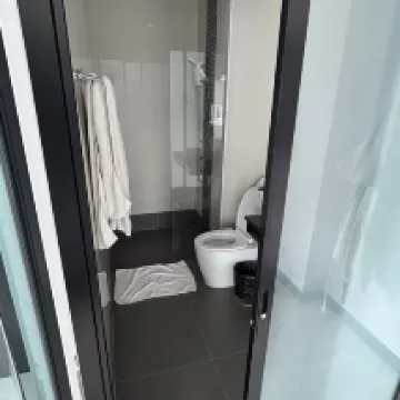 El ambiente es genial, la habitación es amplia y tiene capacidad para 4 personas cómodamente. Hay microondas, hervidor, cucharas, vasos y otros utensilios. El servicio es bueno y el hotel es fácil de encontrar. ¡Lo recomiendo muchísimo!