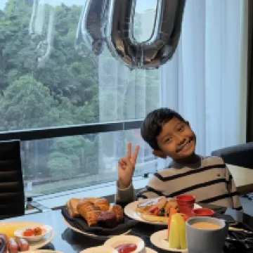 Un agradecimiento al Sr. Reece de la recepción por su ayuda para conseguirnos habitaciones contiguas con una hermosa vista de la Torre Kuala Lumpur. También agradecemos a la gerencia del hotel por la porción de pastel de cumpleaños y los globos enviados a la habitación, para celebrar el cumpleaños de mi nieto (la razón principal por la que me hospedé en el hotel). Esto realmente hizo que mi nieto se sintiera muy feliz 😊. TQVM. Otro agradecimiento va para la señorita Amanda de Evolution, quien me ayudó durante el desayuno (había una cola muy larga antes de conseguir una mesa). Bonita piscina para niños, pero un poco "congestionada": demasiados huéspedes entrando al mismo tiempo. TQ nuevamente por la estadía memorable.