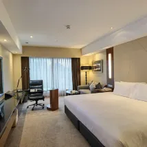 Bed very big and comfortable, each person get 2 big pillows which is thick and comfortable. But one drawback is the noise from the road as the room is facing big road, the noise in the mid night is very loud which makes me hard to fall asleep. The room is at 8th floor. Walkable distance to ampang park station. Gym available with good amount of equipment, but do not have stretch band.