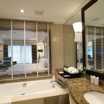 When I entered the room, I noticed that the toilet was quite old and made noise throughout my stay. The cleanliness of the bathtub was also disappointing and did not meet the standard I expect from this brand.