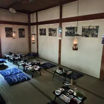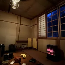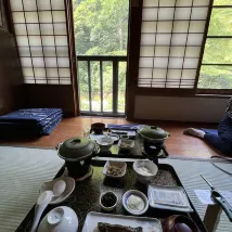We thought it's going to be fresh in August up the mountain but it wasn't. Very hot and without air-conditioning you'll be suffering. Rooms are tiny and it barely fit 4 people. Road to get there is rough so make sure you have an off road car (the last 5 min only). The onsen is insanely beautiful especially the women's. Food was pre-served and left out in the heat to stand. Didn't look particularly appealing. Shared bathrooms.