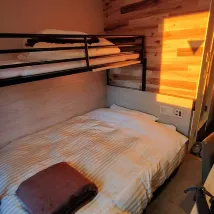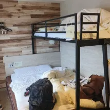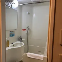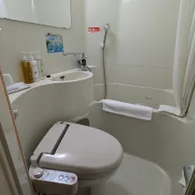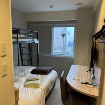 The breakfast has a limited choice, but it is a buffet. The public bath is shared between men and women with time slots. Around 300 yen for washing but drying is free. The room was rather small but they put a huge double decker bed with a king size bed in the bottom, it was a comfortable sleep but not much room to move in the room. Key is using a number lock system which is quite interesting. A super huge TV in the room mounted to the wall. My room is facing east and I able to see sunrise in the morning.