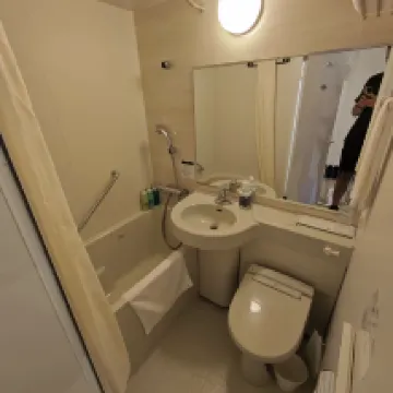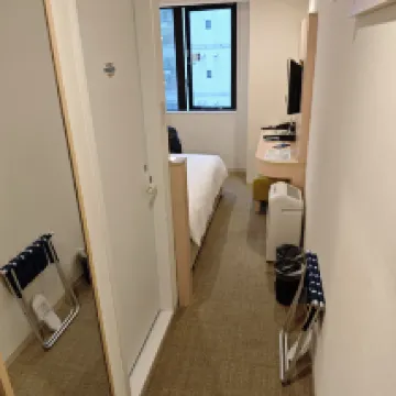 El hotel está en la salida Hachijo Este. Está justo enfrente del McDonald's, solo hay que cruzar la calle. Abajo hay una tienda de conveniencia. El desayuno es muy variado y lo recomiendo; se puede comprar al hacer el check-in. El check-in es automático. El baño es bastante grande. Hay un problema: me alojé en la habitación 520 y la bañera goteaba. Si solo te duchas, no hay mucho problema; pero si te bañas, el agua se filtra aunque no supere el nivel máximo de la bañera. Cuando salí, tenía los tobillos mojados. Me vestí para ir a recepción, y en ese momento el agua ya se había filtrado y la alfombra del suelo estaba empapada. Como solo me quedaba dos días, me dio pereza pedir un cambio de habitación. No sé cómo serán las otras habitaciones. Otro punto es: al salir de la Estación de Kioto por la salida Oeste, primero hay que ir por el pasillo norte-sur y luego buscar Hachijo Este. Si piensas que lo que está al oeste es el este, darás vueltas en círculos; esa fue la lección que aprendí después de dar vueltas durante más de 40 minutos. Si el hotel pudiera sugerir a la estación que pongan un letrero para la salida Hachijo Este, sería mucho más fácil llegar al hotel.