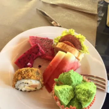 El hotel es relativamente nuevo, limpio e higiénico, la cama es muy cómoda y el servicio es bastante bueno. Está a menos de 10 minutos a pie del hotel al aeropuerto. El desayuno no es mucho pero sabe bien. No lo es. lejos del muelle. El único inconveniente es que el hotel está construido sobre una montaña. Sube la montaña paso a paso, probablemente por el costo de construcción y el inconveniente de construir un ascensor. Subir las escaleras es un poco cansado, pero el El encargado del equipaje le ayudará a conseguir la habitación.