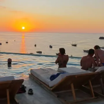 La villa costaba 4,5 millones de rupias por noche y las instalaciones eran muy caras. El entorno olía a pescado. La piscina era muy pequeña. La habitación era muy pequeña y sofocante. El baño era muy pequeño. Las instalaciones dentro de la villa eran muy estándar, sin ningún lujo. Lo que me alegró fue la recepcionista, llamada Rey, quien fue muy amable y profesional. El desayuno estaba delicioso, pero la comida fuera del desayuno era muy mala. No recomiendo comer en este hotel. Hay varias cafeterías fuera del hotel, el precio es la mitad del precio del hotel, pero la calidad es muy buena con una vista similar. La panadería es muy mala, algunos productos no están bien hechos. El ambiente es muy caluroso; mi consejo es intentar llegar al hotel después de las 4 pm porque hace mucho calor y solo preparan la habitación después de las 2 pm. La zona de la piscina huele a pescado y la piscina no está limpia. Este lugar solo es adecuado para fotos y disfrutar del atardecer. Si tienes que alojarte en este hotel, te recomiendo reservar una habitación estándar de lujo, que es mucho más barata que la villa, pero la calidad y las instalaciones son las mismas. Siento que salí perdiendo al reservar una villa, ya que la habitación de lujo es más espaciosa y ventilada, y cuesta solo un millón de rupias por noche.