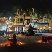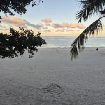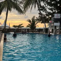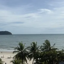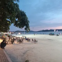 Directamente en la playa de Cenang, a solo diez minutos en coche del aeropuerto, con muchos turistas y pequeñas tiendas alrededor. El desayuno se puede tomar directamente en la playa, con vistas al mar.