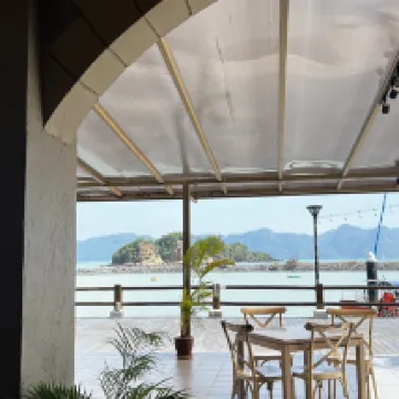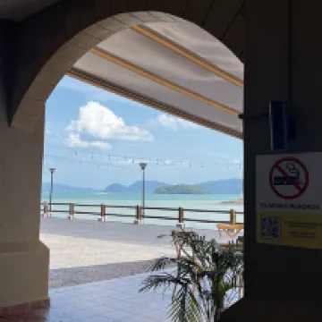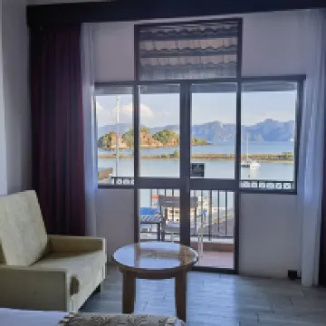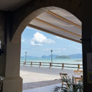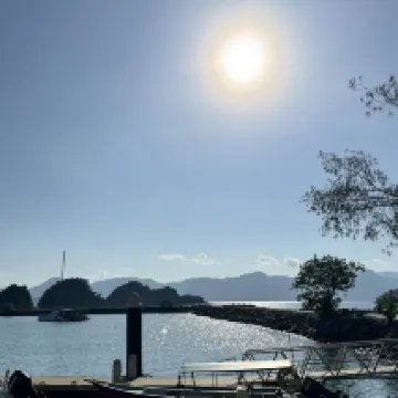 Vistas preciosas, pero una estancia decepcionante. Las vistas al mar desde el resort eran realmente impresionantes, sin duda lo mejor del viaje. Lamentablemente, el resto no estuvo a la altura de las expectativas. Nuestra habitación tenía suelos sucios, rincones polvorientos y sábanas bastante decentes. El resort parecía descuidado, y el agua de la piscina infinita estaba sucia y turbia. Para colmo de males, hubo un evento naval que duró una semana, con sirenas y cañonazos fuertes que empezaban cada mañana temprano, sin que se informara a los huéspedes con antelación. Una auténtica decepción en general.