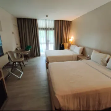 Reservamos dos habitaciones de lujo con vista al mar, pero no había playa enfrente; solo había un arrecife *****. Vimos pequeños cocodrilos en la orilla por la mañana. Estaba recién renovado, pero aún bastante viejo. La puerta del balcón de una habitación no cerraba bien, lo que dejaba entrar corrientes de aire por la noche. El baño no tenía agua caliente y el desagüe estaba atascado. El personal vino a destaparlo, pero nadie vino a arreglar el agua caliente. El desayuno costaba 40 ringgits por persona; no lo probamos.