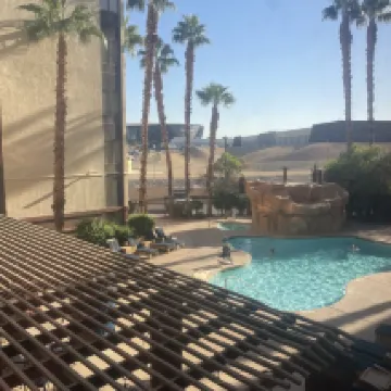 La única pega que le pondría es que dependes de uber/coche propio ya que está “cerca” del Strip pero andando en pleno Julio es imposible, además hay que hacer un rodeo para cruzar como una autovía/carretera por un puente.