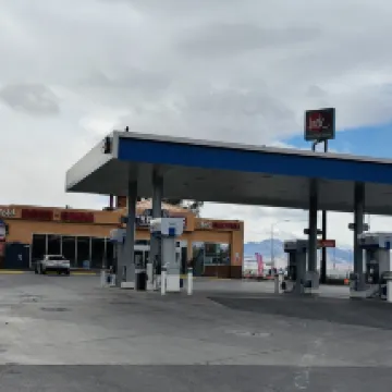 Tiene cerca una gasolinera con una pequeña tienda y la hamburguesería In&Out.